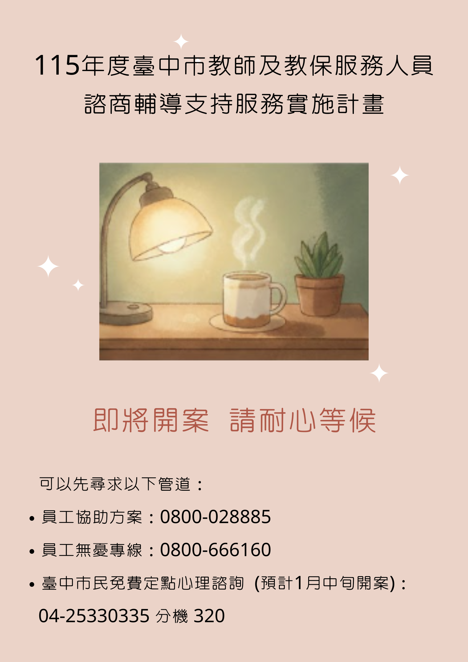 更多資訊請點選:114年度臺中市教師諮商輔導支持服務 台中張老師團體諮商/工作坊